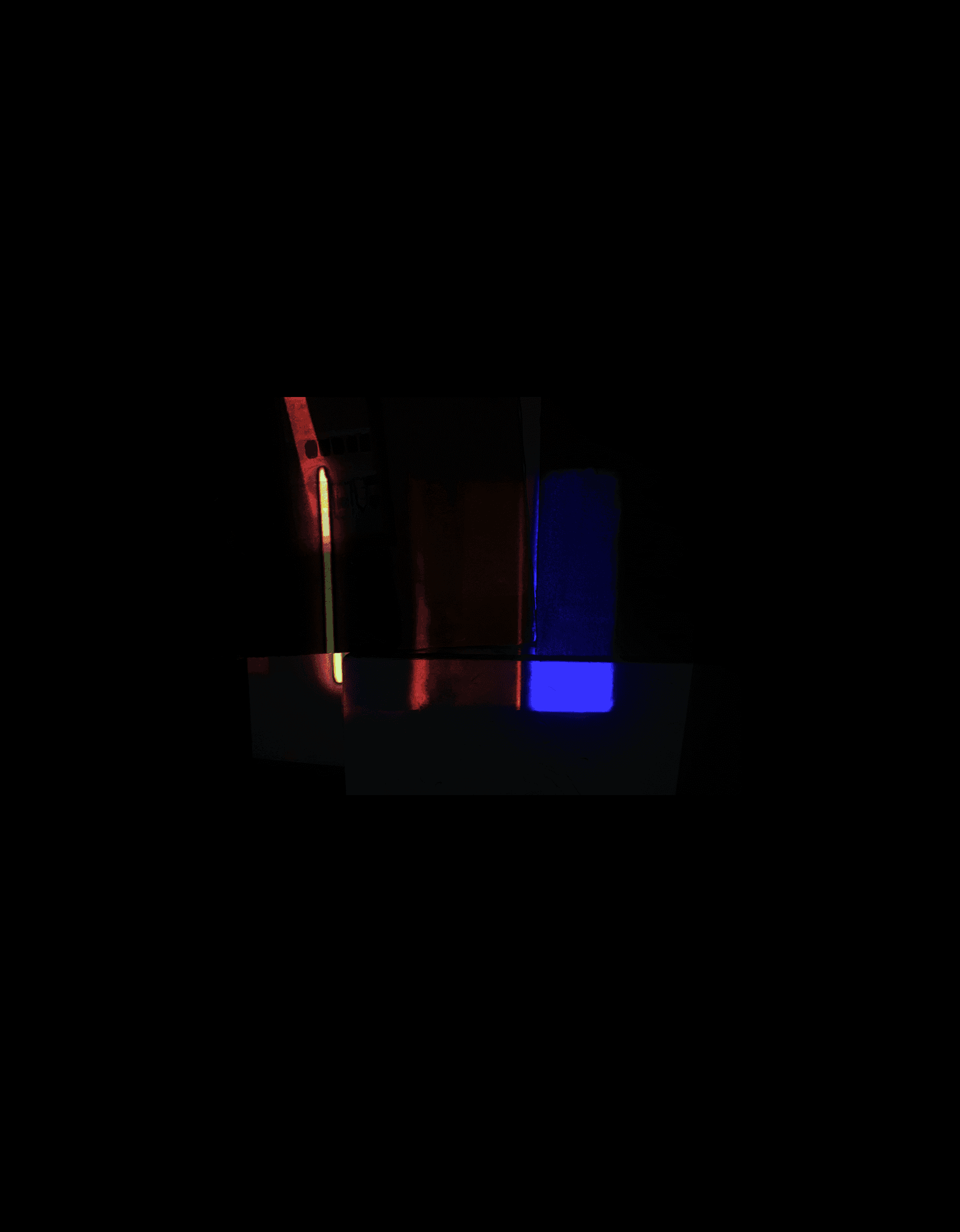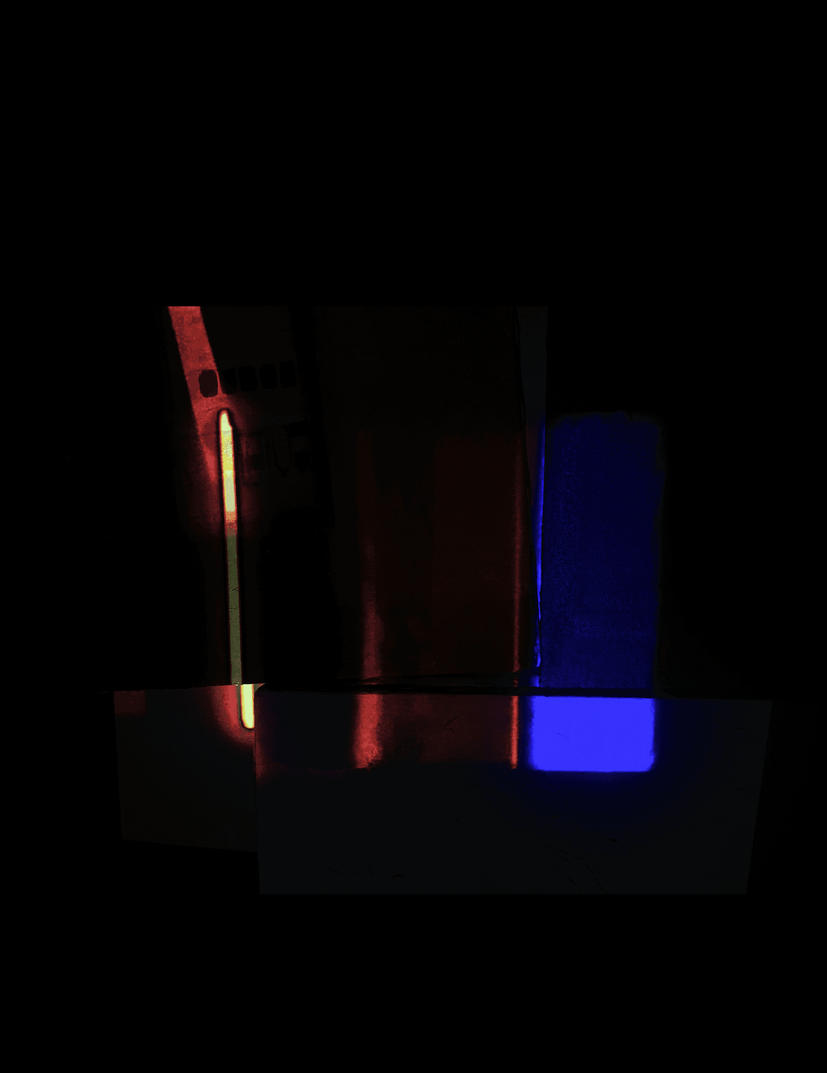 闇の中に浮かぶ色の帯は、自己が決して固定されたものではなく、常に揺らぎ、変化し続ける「波動」や「振動」として存在していることを示す。色が滲み合う境界は、個が溶け合い、再び形づくられる〈生成〉の瞬間を象徴している。